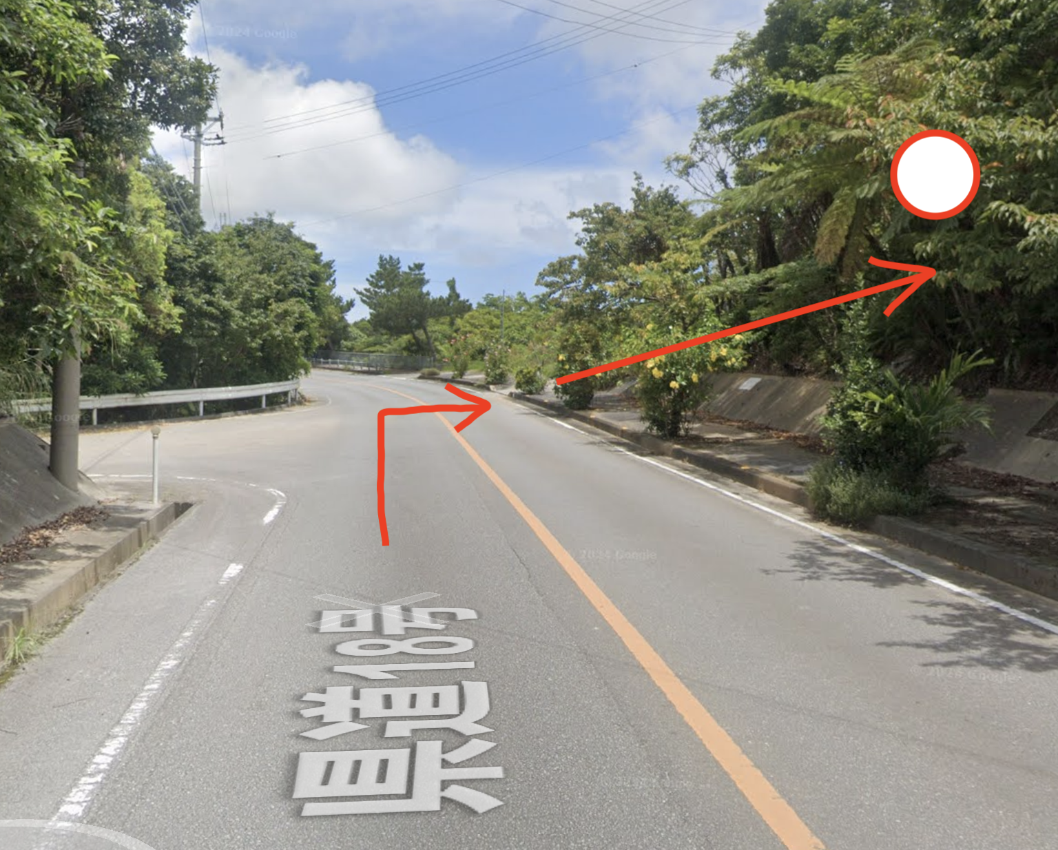 オリオンビール名護工場前を、大浦方面へ向かって下さい。山の方に大きな橋を通り坂を登る道になります。